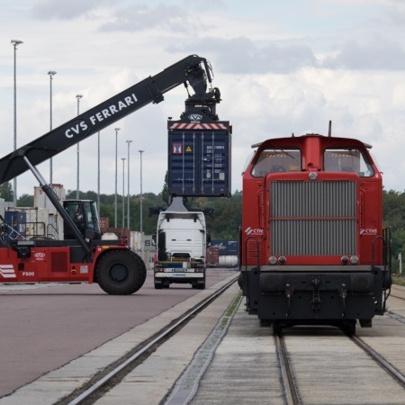 Zum Container TerminalErfahren Sie mehr über die Infrastruktur und die Leistungsfähigkeit des Container Terminals Halle Saale (CTHS).